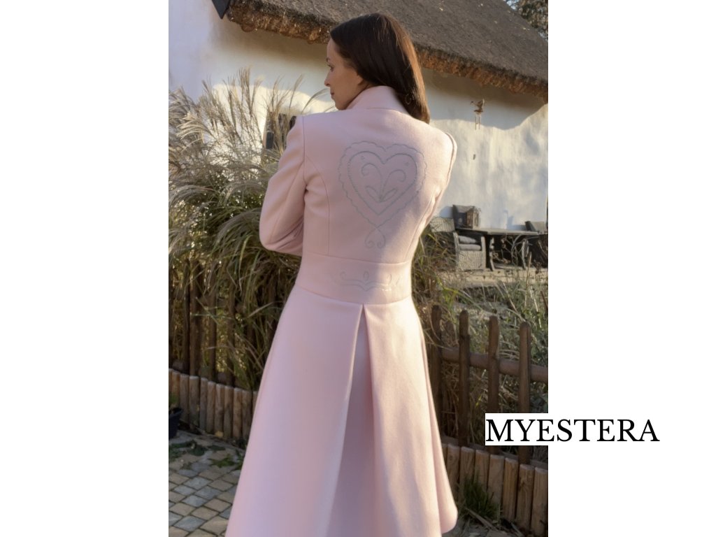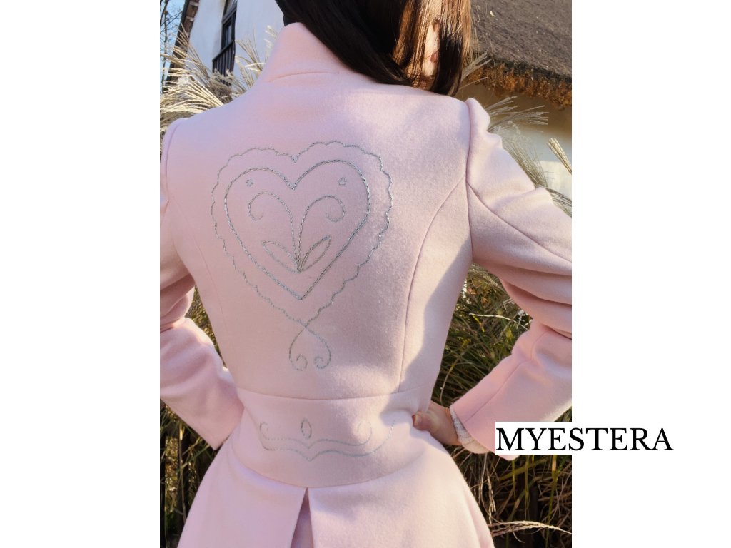 Bledo ružový kabát s ručnou výšivkou srdca Eva Benova